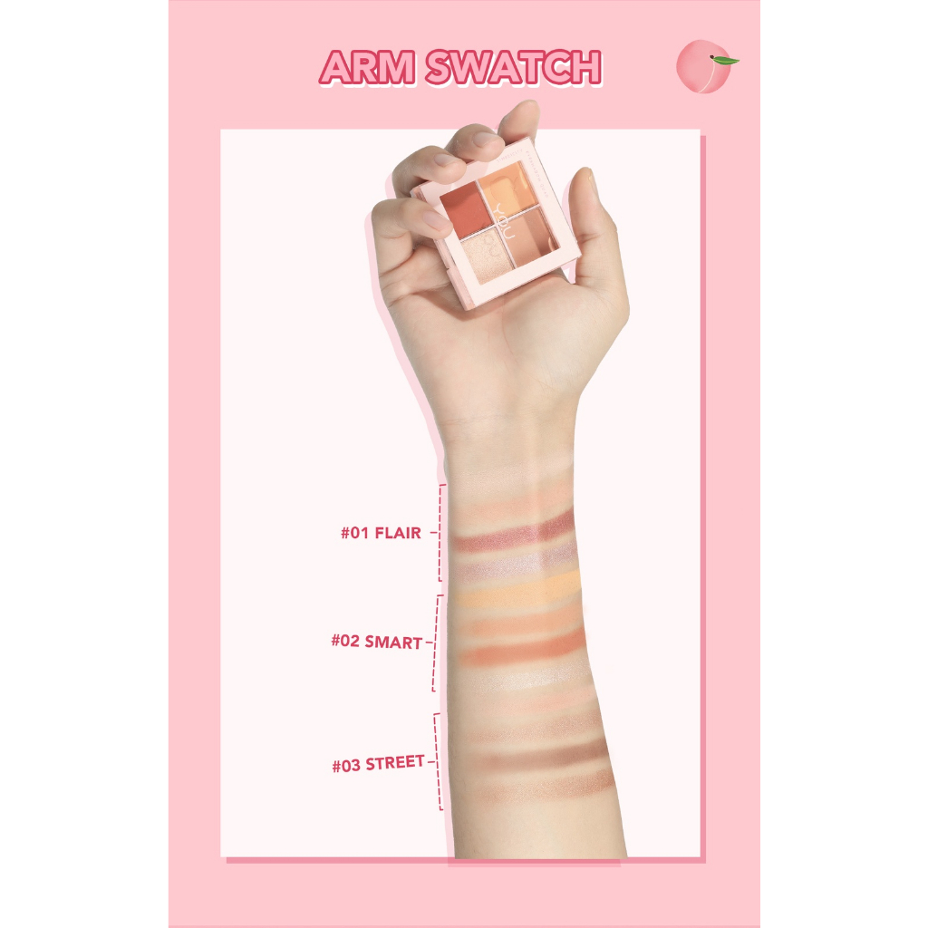 Selling Point: 1. Four Step Pratical Color Warna eyeshadow dalam 1 palette untuk menciptakan beragam tampilan sesuai keinginan. 2. Rich Pigmentation Memiliki pigmentasi yang tinggi untuk riasan mata yang indah. 2. Silky and Blendable Memiliki tekstur lembut yang mudah dibaurkan untuk hasil yang lebih optimal