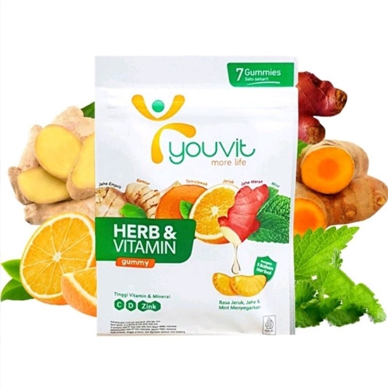 Detail YOUVIT Herb & Vitamin gummies 7 hari dengan Vit C,D,Zink & 5 bahan Herbal