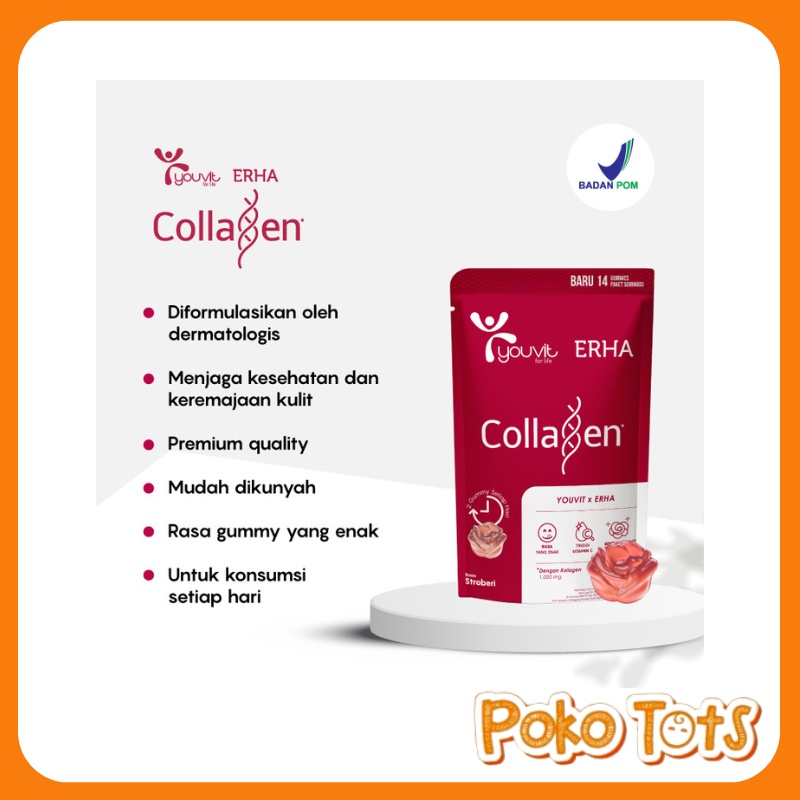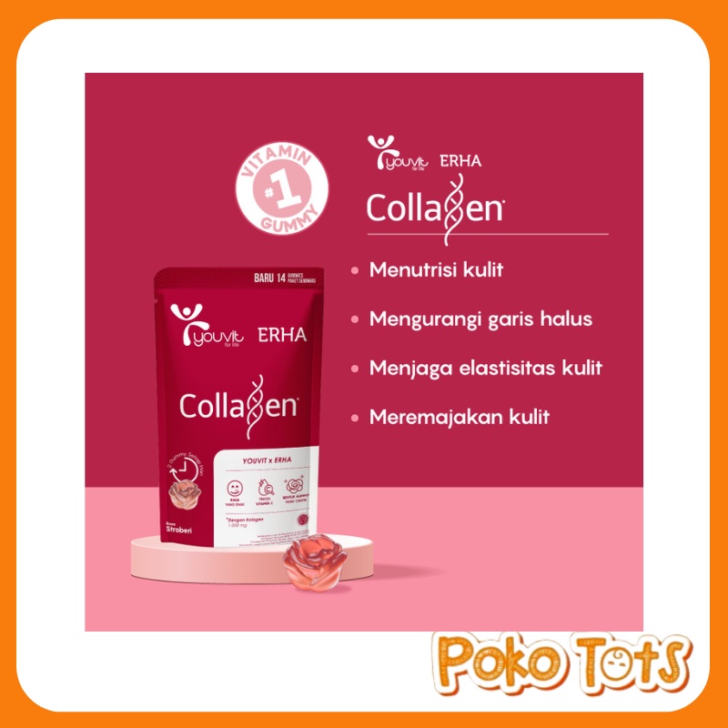 Detail Youvit x Erha Collagen Anti Aging 14 Gummies Suplemen Kesehatan Kulit Wajah Anti Kerut