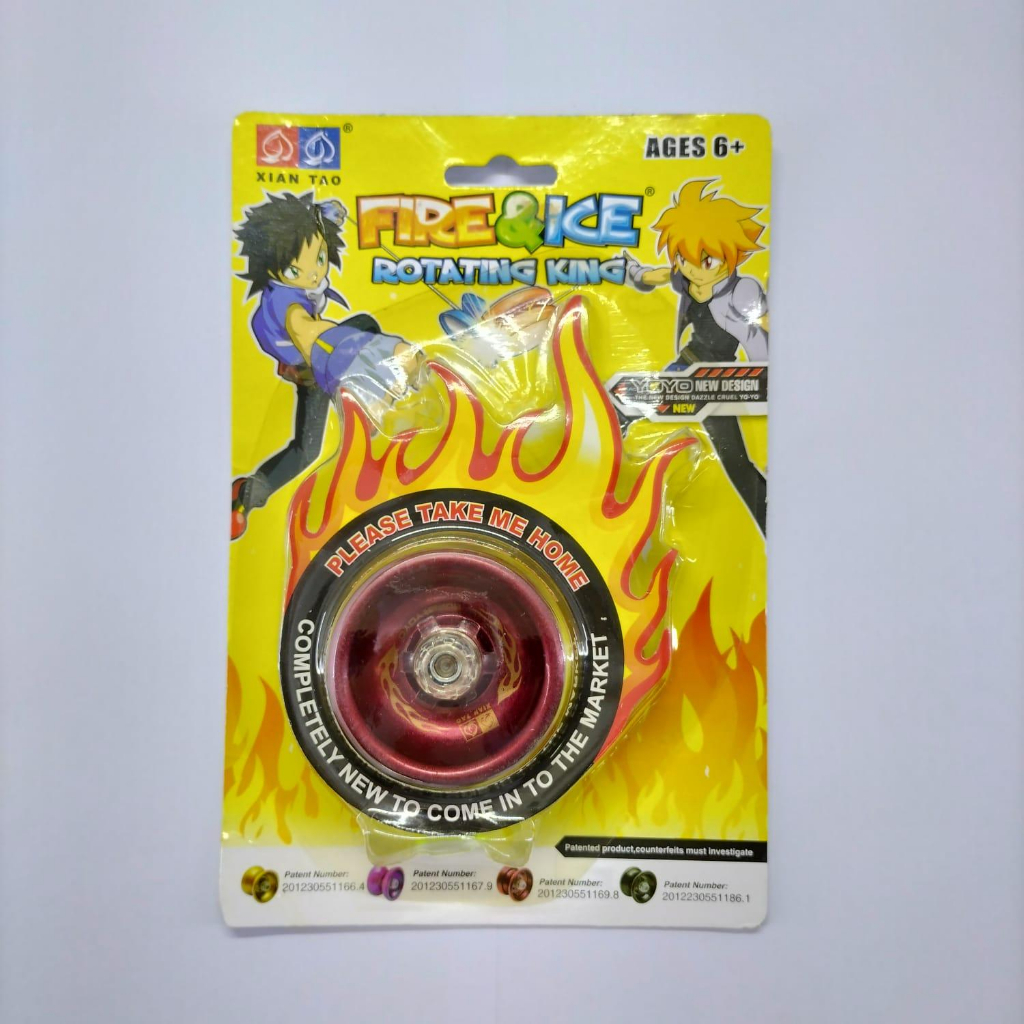 Satuan Mainan Yoyo untuk anak usia 6th+ edisi FIRE & ICE Rotating King berisi 1pcs yoyo berukuran 5,5cm lengkap dengan talinya.