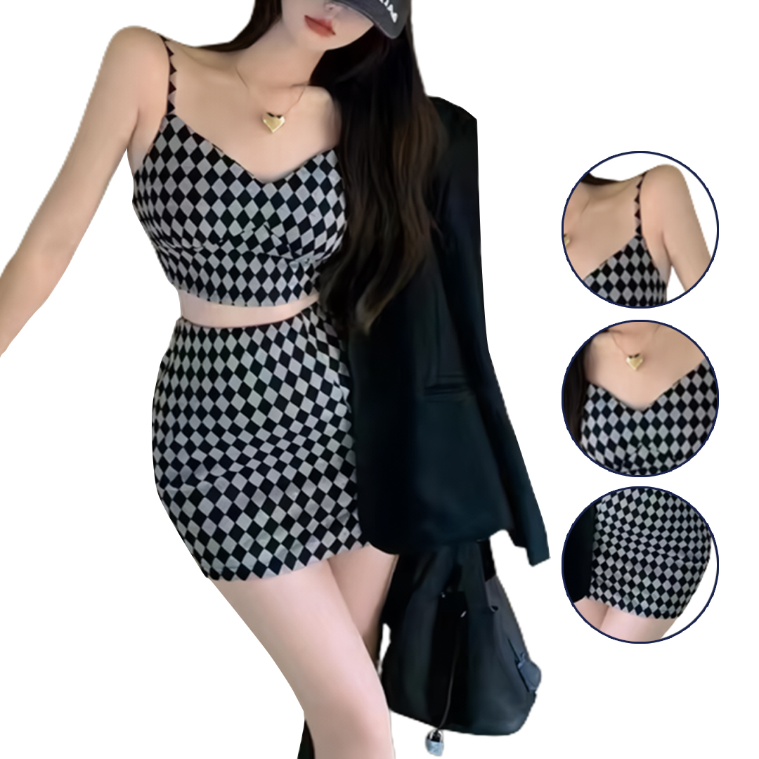 Set Trendi Korean Tanktop Rok Mini Seksi Cantik, Set Wanita 2in1-Yosinogawa