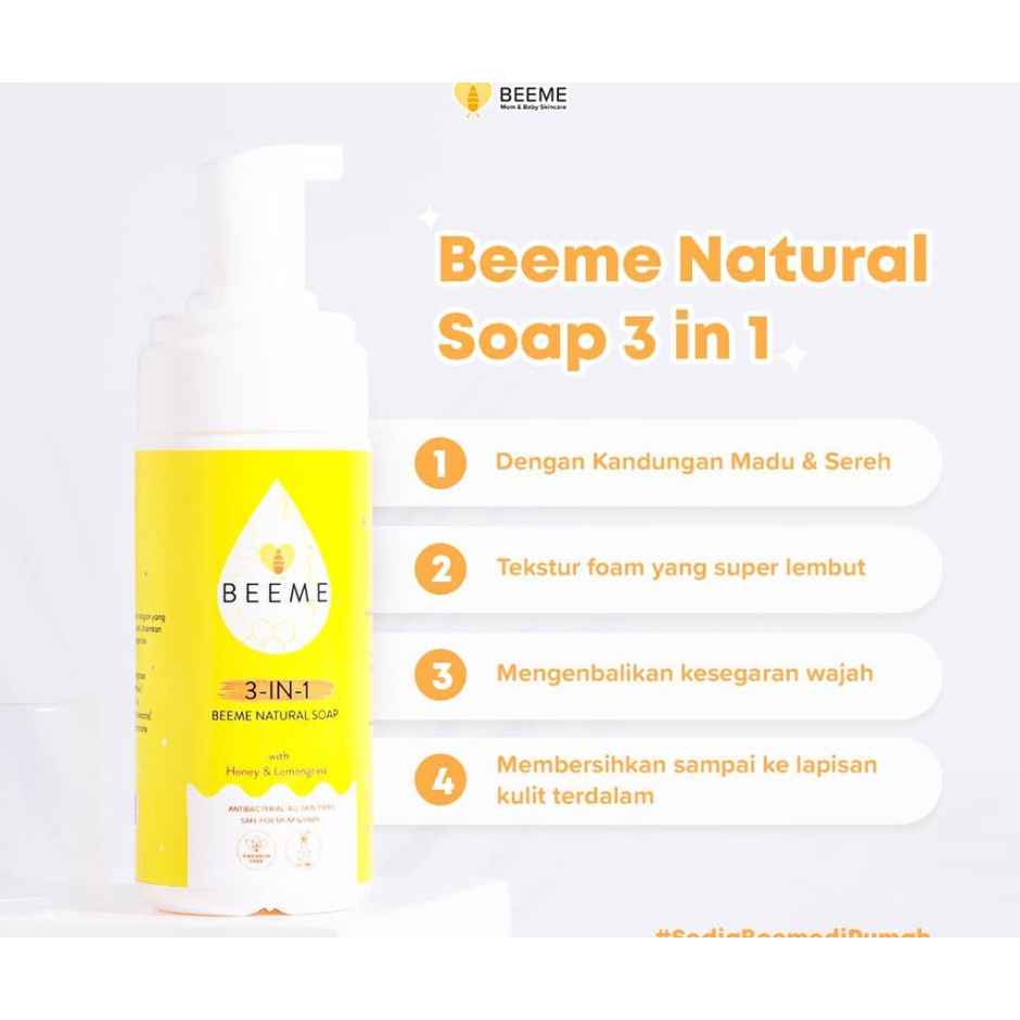 Beeme Natural Soap 3 IN 1 With Honey and Lemongrass Isi : 100 ml No BPOM: NA18231200657