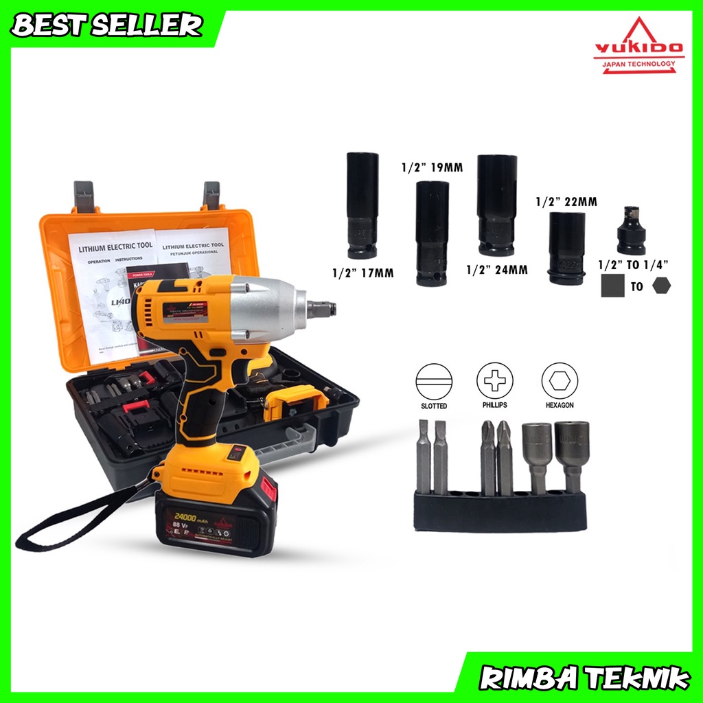 YUKIDO Impact Wrench 88v Heavy Duty Cordless Pembuka Baut Baterai 88Vf - 600Nm