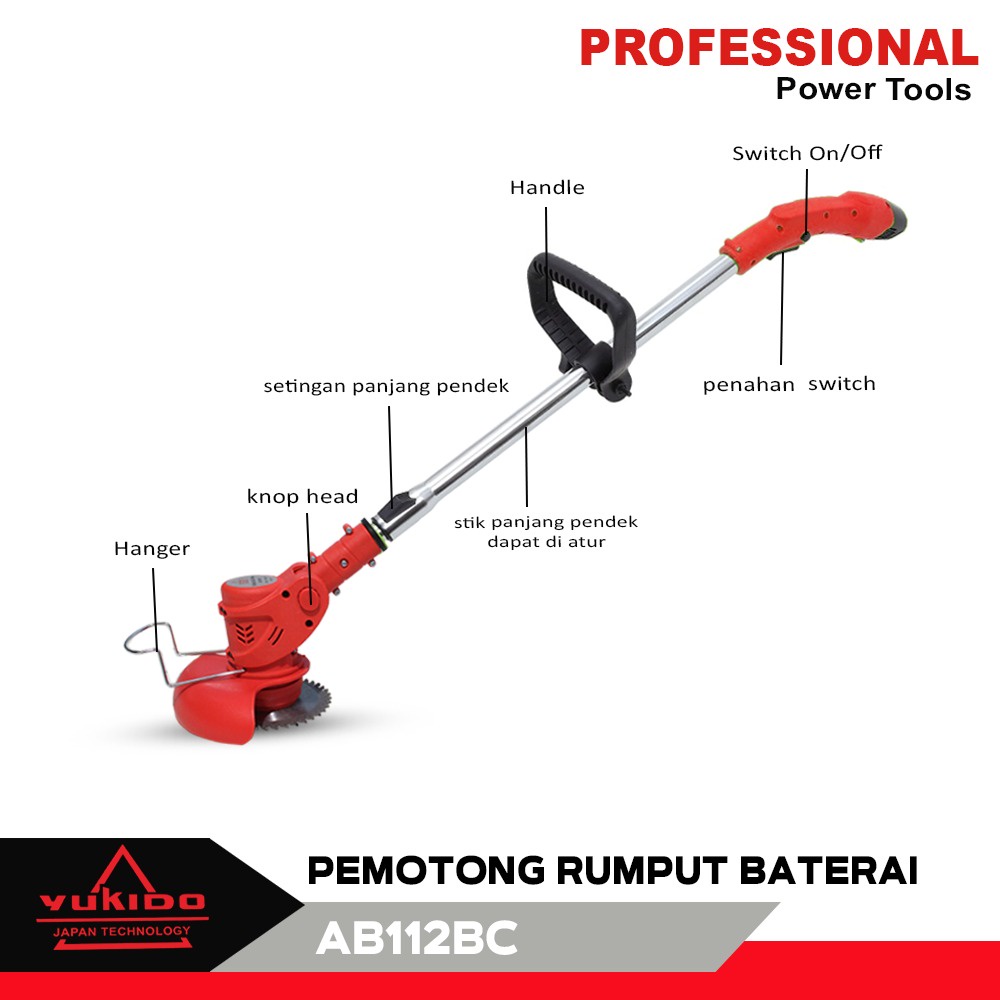 Detail YUKIDO Mesin Potong Rumput 12V Cordless Lawn Mower Electric Grass Trimmer with Li-ion Batteries