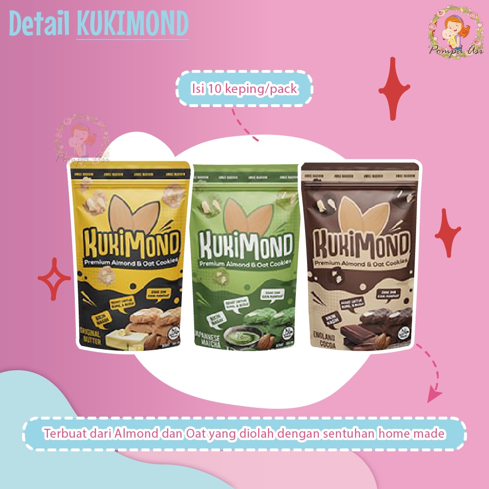 KUKIMOND Terbuat dari Almond dan Oat pilihan, diolah dengan sentuhan home made yang istimewa dan penuh sentuhan butter yang lezat. Kukimond sangat cocok untuk menemani cemilan sehat bagi ibu menyusui karena mengandung zat zat bergizi yang dapat membantu mengentalkan ASI Mommy.