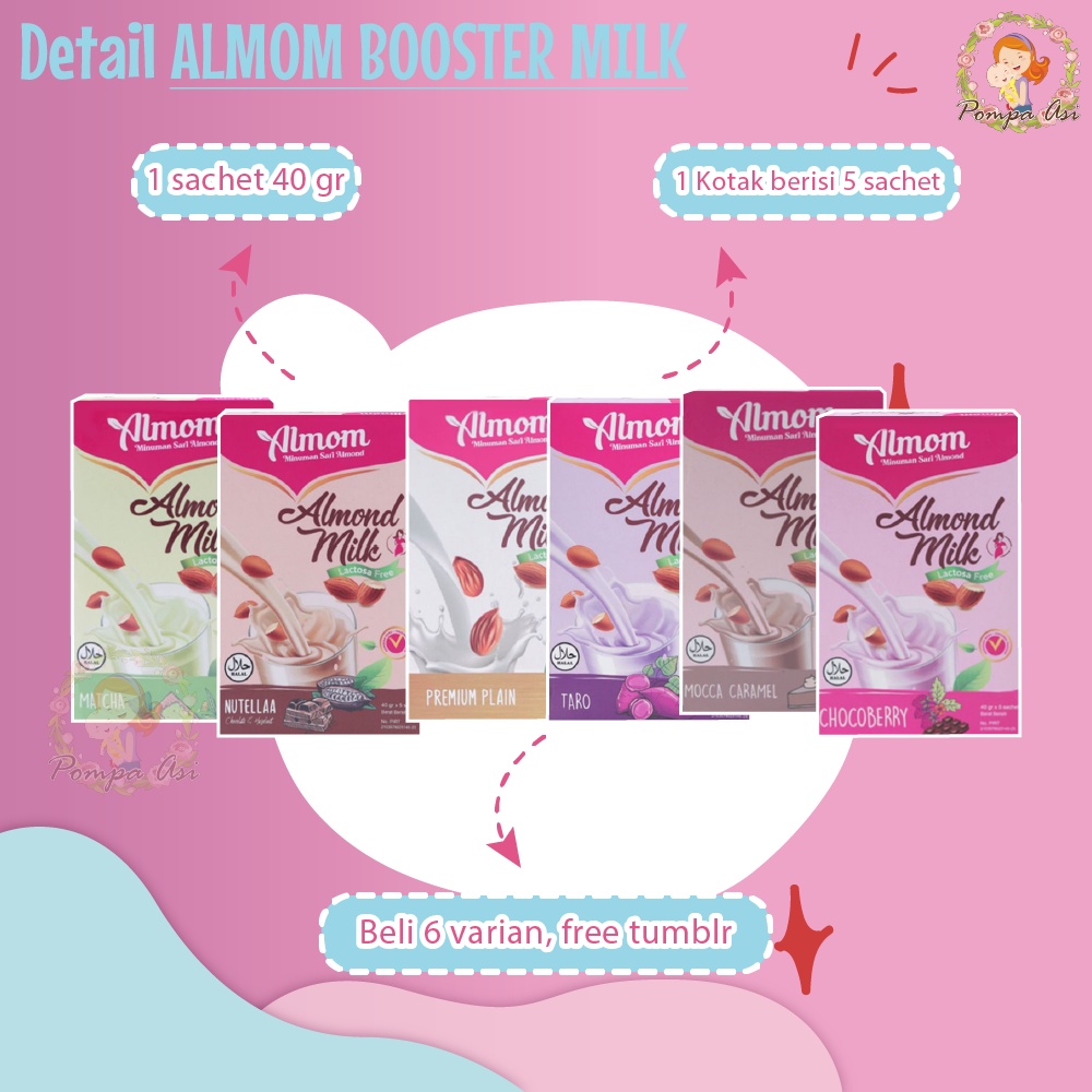 ALMOM BOOSTER MILK Pelancar asi pertama ber-fenugreek dari bahan sari almond, oat, dan soya. Secara tradisional sudah terbukti untuk meningkatkan kandungan gizi dalam ASI dan meningkatkan produksi ASI. Penyajiannya Praktis dan Mudah, tidak perlu disaring karena tidak mengendap.Dilengkapi dengan fenugreek dan chia seed.
