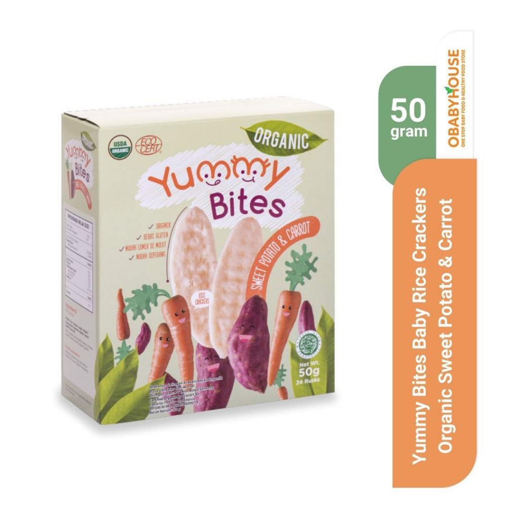Detail Yummy Bites Baby Rice Crackers Organic Sweet Potato & Carrot 50 gr