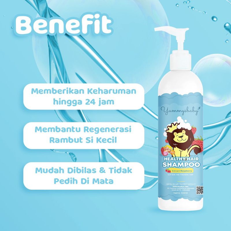 ๐ฃ๐ก Yummys Baby Healty Hair Shampoo Penumbuh Rambut Bayi mengandung minyak Kemiri, Ginseng, dan Ekstrak Raspberry yang memiliki manfaat : - membersihkan rambut hingga ke akar - menghitamkan dan mengkilaukan rambut - mudah di bilas dan tidak perih di mata