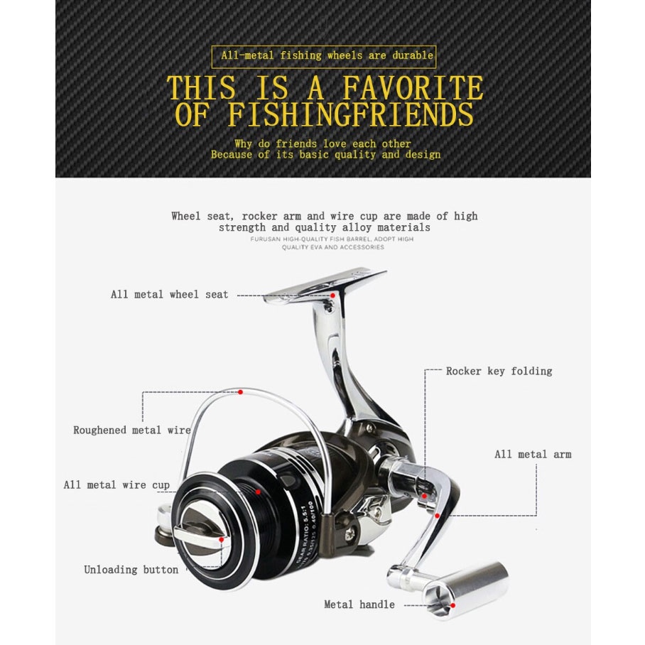FEATURES Gear Ratio Reel Pancing ini hadir dengan gear ratio 5.5:1 dan juga memiliki 12+1 ball bearing sehingga putaran reel lebih cepat dan lancar.