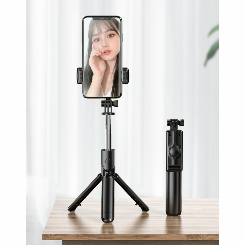 Deskripsi * Didesain compact, memiliki bentuk minimalis, mudah dilipat dan dibawa kemana-mana * Dilengkapi fitur tombol bluetooth untuk permudah foto selfie * Bagian holder atau penjepit ponsel yang kencang * Dilengkapi 3 kaki sebagai selfie stick tripod * Posisi ponsel dapat diatur dan diputar 360 derajat * Dibuat dari plastik ABS yang tebal dengan tiang besi tahan karat yang kokoh,panjangnya bisa diperpanjang hingga 80cm. * Cocok digunakan saat perjalanan jauh atau bertamasya untuk konten kreator, selebgram, sampai keluarga