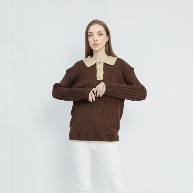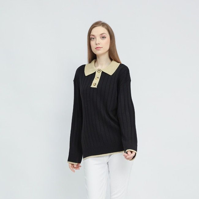 Detail Sweater Wanita - Collar Girl Sweater Oversize - Sweater Wanita Korean Style