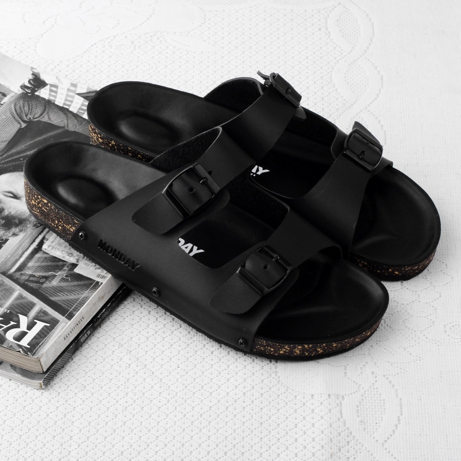 Detail Yuno Full Black | 36-46 | Sandal Slop Kulit Original Ori Santai Kasual Casual Distro Pria Wanita Cowok Cewek Sendal Footwear | FORIND x Story of Monday