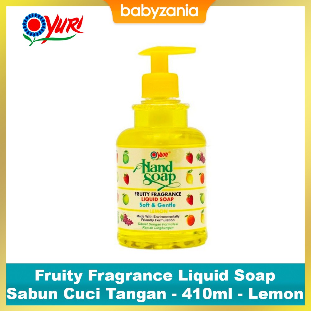 Yuri Handsoap mengandung Buah-buahan yang selain efektif untuk membersihkan tangan dari kotoran dan kuman juga memberikan wangi yang segar serta tidak membuat tangan menjadi kering atau tangan tetap lembut.