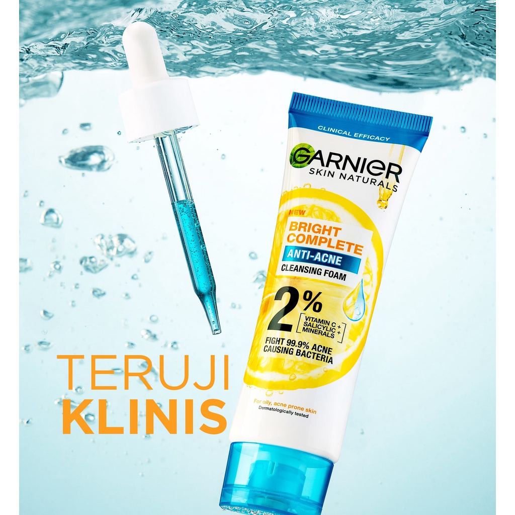 Detail ☘️Yuri Kosmetik☘️ Garnier Bright Complete 3 in 1 Anti Acne Foam 100ml / Garnier Bright Complete 3 in 1 Anti Acne Foam 50ml