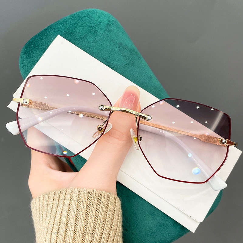 Aksesoris Fashion > Kacamata & Aksesoris > Kacamata Hitam > (YUZHU) Desain Mode Baru Frameless Poligonal Baca Kacamata Bingkai Logam Anti Cahaya Biru HD PC Gradien Membaca Eyeglasses