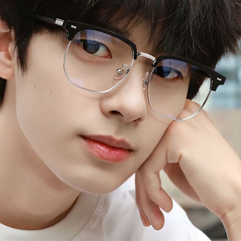 Detail (YUZHU) Indah Mode Tinggi Logam Bulat Persegi Grame Kacamata Anti Cahaya Biru Alis Bingkai Setengah Rim Eyeglasses