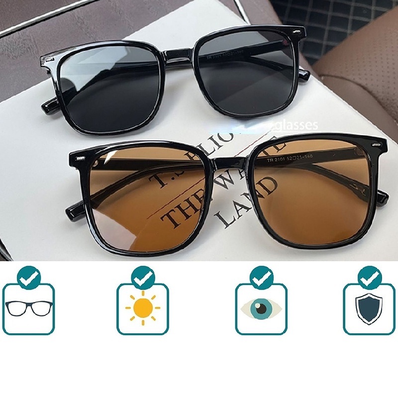 Aksesoris Fashion > Kacamata & Aksesoris > Kacamata Hitam > (YUZHU) Kacamata Hitam Pria Gaya Kacamata Hitam Dengan Bingkai Kotak Tinggi Amti UV Kacamata Pantai Cantik