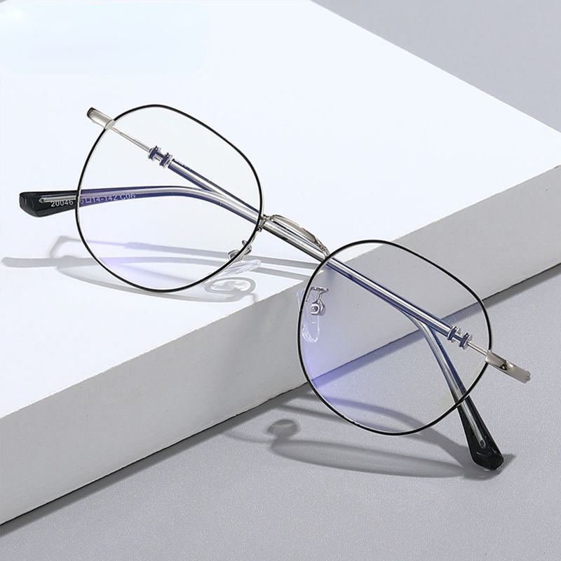 Aksesoris Fashion > Kacamata & Aksesoris > Frame & Lensa Kacamata > (YUZHU) Kacamata Hitam Warna Permen Bingkai Bulat Logam Fashion Korea INS Gaya Anti Blue Light Eyeglasses Untuk Wanita