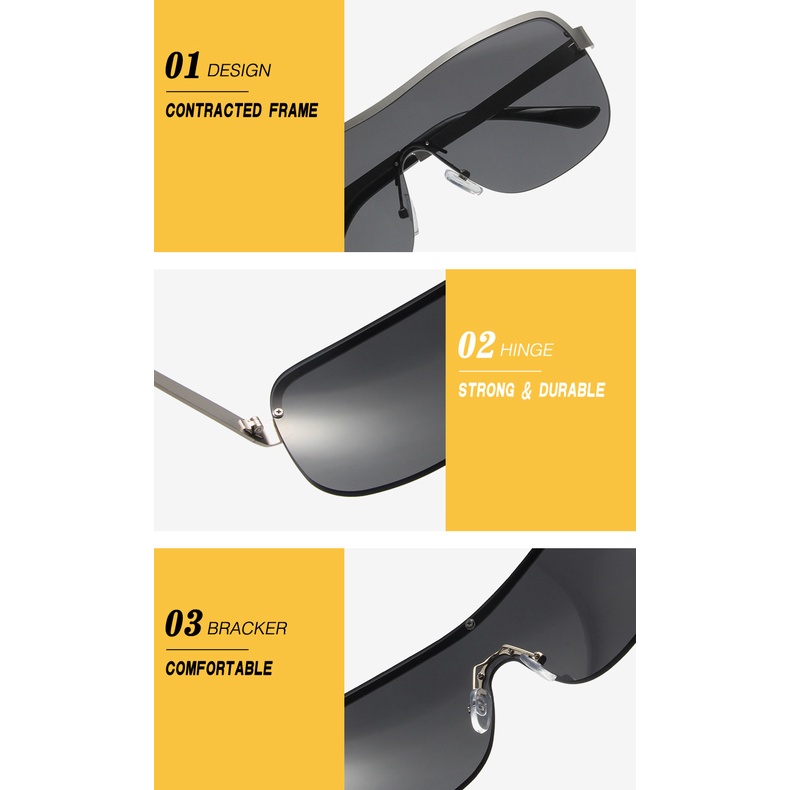 Detail (YUZHU) Mode Barat Logam Setengah-rim Kacamata Kepribadian One Piece Kerai Kacamata Hitam