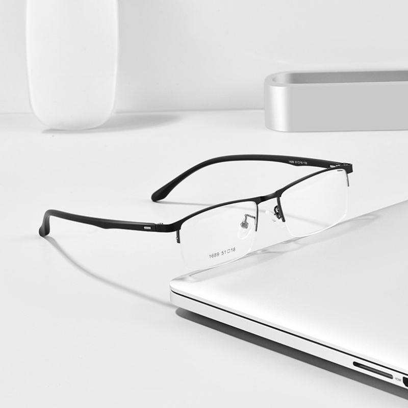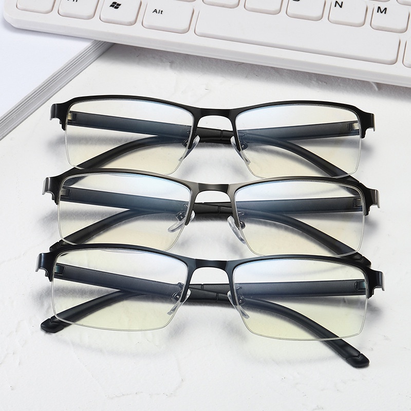 Aksesoris Fashion > Kacamata & Aksesoris > Frame & Lensa Kacamata > (YUZHU) Mode Baru Setengah Rim Bisnis Kacamata Lensa Yang Dapat Diganti Anti Cahaya Biru Kacamata Pria