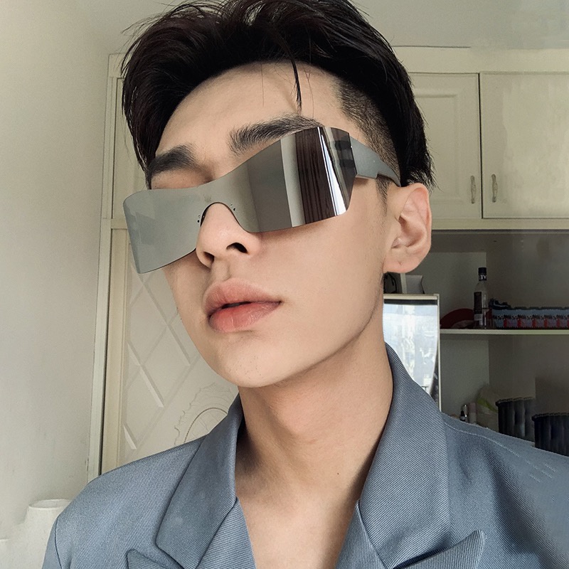 Detail (YUZHU) One Piece Oversized Rimless Sunglasses Western Fashion Irregular Outdoor Cycling Sports Sunglasses
