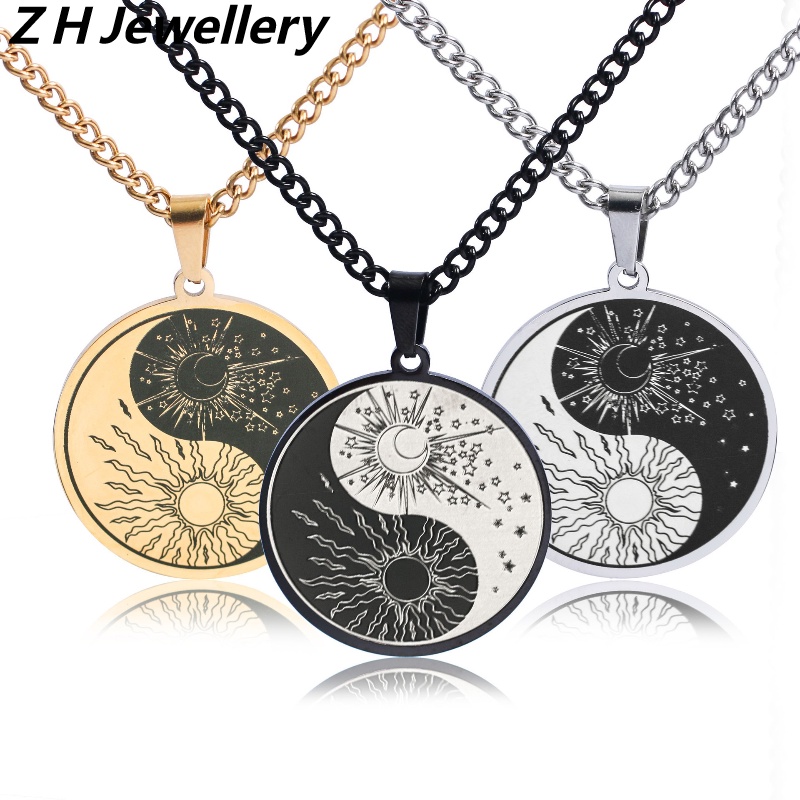 Detail Z H Perhiasan Hip Hop Rock Stainless Steel Yin Yang Tai Chi Liontin Fashion Pria Dan Wanita Baja Titanium Kalung Retro Punk Aksesoris Pesta
