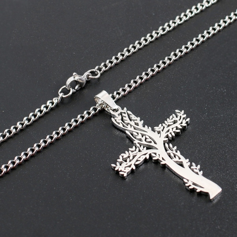Detail Z H Perhiasan Lapis Emas 18K 24K Gold S925 Perak Pohon Kehidupan Salib Liontin Untuk Pria Dan Wanita Fashion Anti Karat Kalung Retro Hip Hop Baja Titanium Aksesoris Pesta