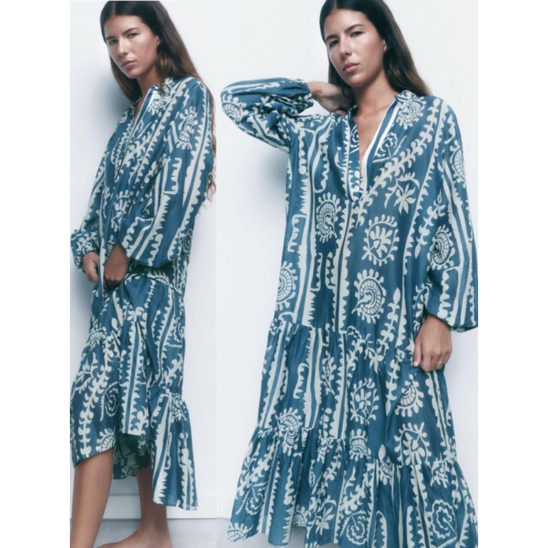 Video perkenalan produk Z** printed linen maxy dress. Sumber: Shopee.
