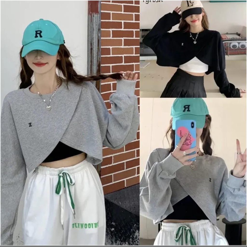 Detail Z Sling Crope Sweater Wanita Korean Style - Atasan Jumper Kekinian