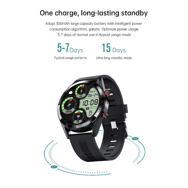Baterai yang disematkan berkapasitas 300mAh dengan penggunaan hingga 15 hari dengan waktu pengisian daya hanya 2 jam saja.