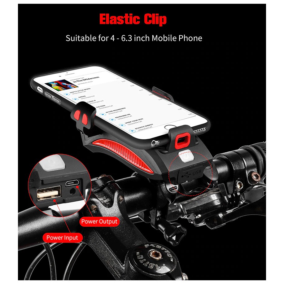 Lampu sepeda dari CoolChange ini dapat menemani berbagai aktivitas Anda karena memiliki beragam fungsi seperti power bank, phone holder hingga klakson sepeda. Lampu sepeda CoolChange dapat bertahan hingga 9 jam lamanya. Anda tak perlu khawatir akan daya tahan lampu sepeda ini karena sangat awet. Selain itu, lampu sepeda ini terbuat dari bahan silicone berkualitas sehingga aman dipakai sebagai phone holder. Features