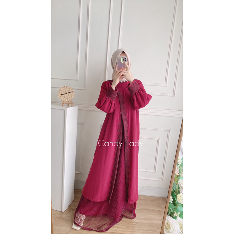 Bahan Chiffon Ceruty premium mix brukat. Bahan halus, ringan, jatuh dipakai, menyerap keringat dan pastinya comfy to wear.