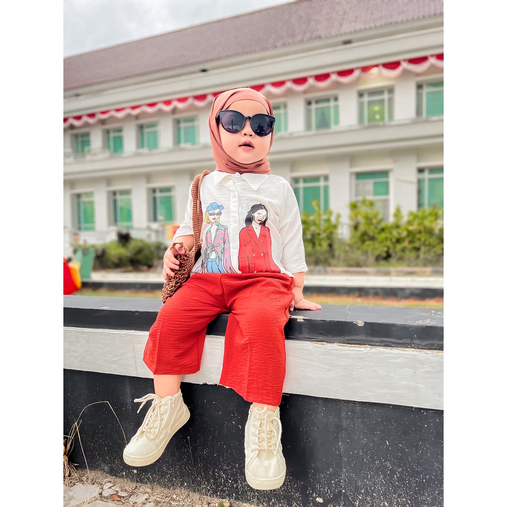 Zahra Setelan Anak Perempuan Oryza Crop Bahan Crinkle | Pakaian Anak Terlaris Umur 1 - 7 Tahun