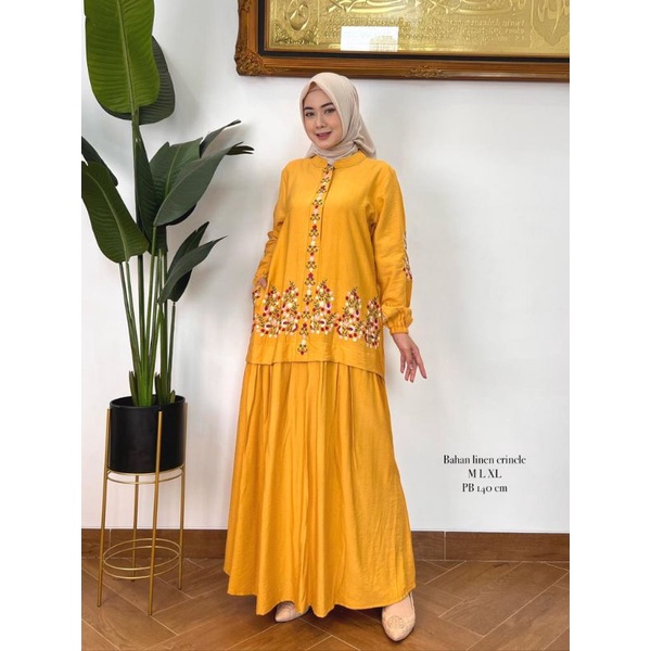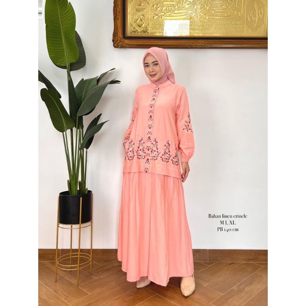 Fashion Muslim > Dress Muslim > Gamis > Zaja - Baju Gamis Linen Cringkle Bordir Cantik & Mewah Pakaian Dress Muslim Perempuan Dewasa Kekinian Baju Muslim Cewek Terkini Fashion Muslim Wanita Terbaru