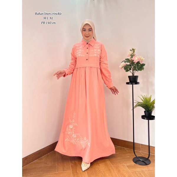 Detail Zaja - Baju Gamis Perempuan Dewasa Polos Dress Muslim Linen Cringkle Bordir Cantik & Anggun Fashion Muslim Perempuan Terbaru Pakaian Muslim Cewek Mewah
