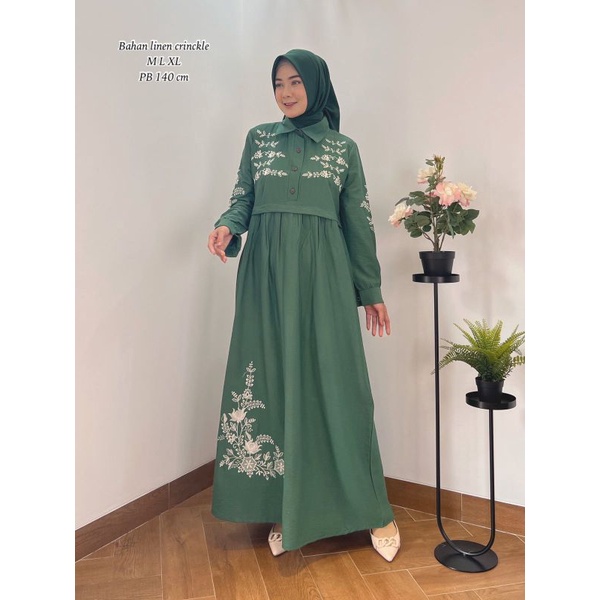 Fashion Muslim > Dress Muslim > Gamis > Zaja - Baju Gamis Perempuan Dewasa Polos Dress Muslim Linen Cringkle Bordir Cantik & Anggun Fashion Muslim Perempuan Terbaru Pakaian Muslim Cewek Mewah