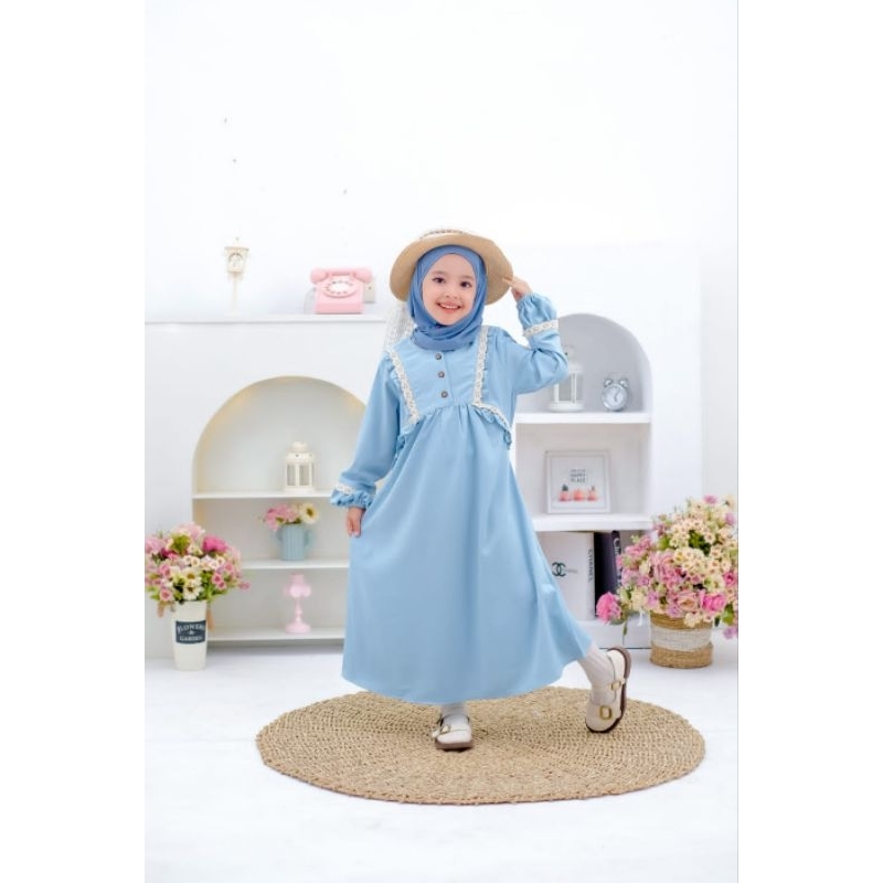 Detail Zaja - Gamis Ayara Biru Polos Kombinasi Rempel & Renda Untu Anak Perempuan Umur 4-12 Tahun Busana Muslim Anak Perempuan Terbaru