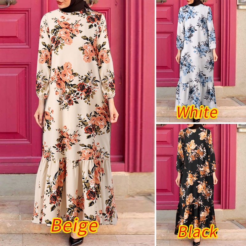 Package included:1 Dress Material: Polyester Colors:Black,White,Beige Sleeve Length:Full Sleeve Neckline:O-Neck Pattern:Floral printed Buckle chain:Buttons on the back Features:Elastic Cuff Style:Leisure,Bohemian,Retro,Europe,Literature,Muslim Dress Occasion:Family,Party,Beach,Wedding,Holiday Attentions: 1.The Real Object May Exist Slightly Colors Differences Compared To Images As Different Computers Display.Caution If Minding,Thanks. 2.There Might Be A Manual Measuring 1-3 cm Error.Sorry For Any Inconvenience. 3.Please Prevail On Real Item, Model Images For Reference Only. 4.Attention!!!Please check the size chart carefully before placing the order.