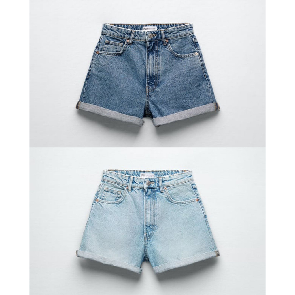 High-waist rigid Bermuda shorts with five pockets. Turn-up hems. Zip fly and metal button fastening on the front.