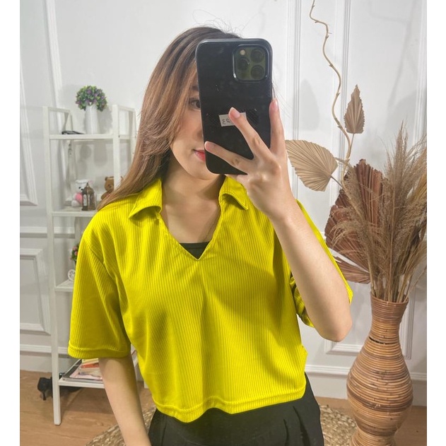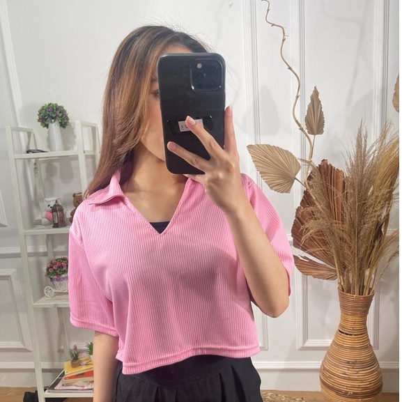 ATASAN WANITA LILY TOP / ATASAN KERAH CROP TOP WANITA LD : 96CM PANJANG : 40CM Bahan : DROP NEEDLE