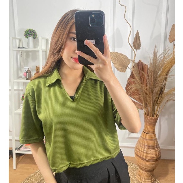 Detail ZASKIYA - ATASAN WANITA LILY TOP / ATASAN KERAH CROP TOP WANITA