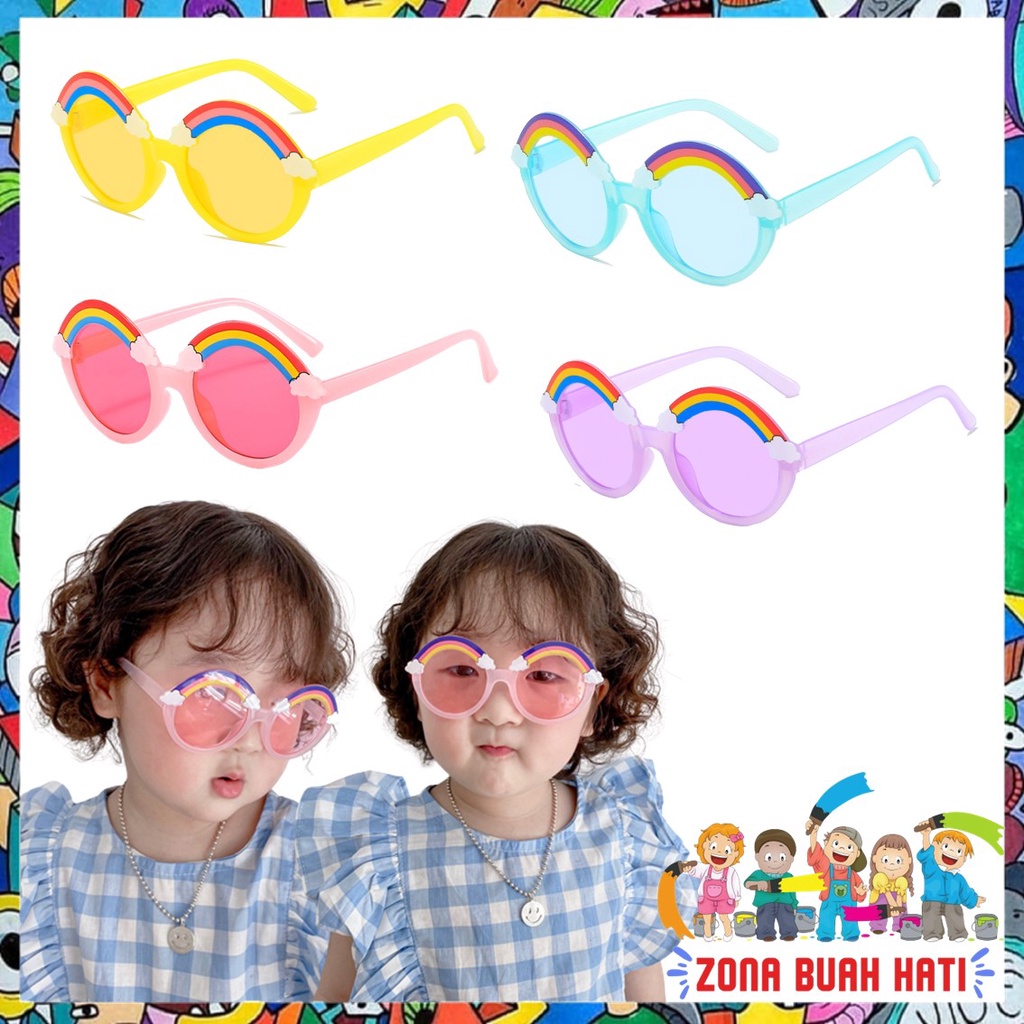 Detail ZBH Kacamata Anak 6647 Kacamata Fashion Anak Motif Pelangi Kacamata Fashion Anak Terbaru kacamata Hitam Rainbow High Quality Import