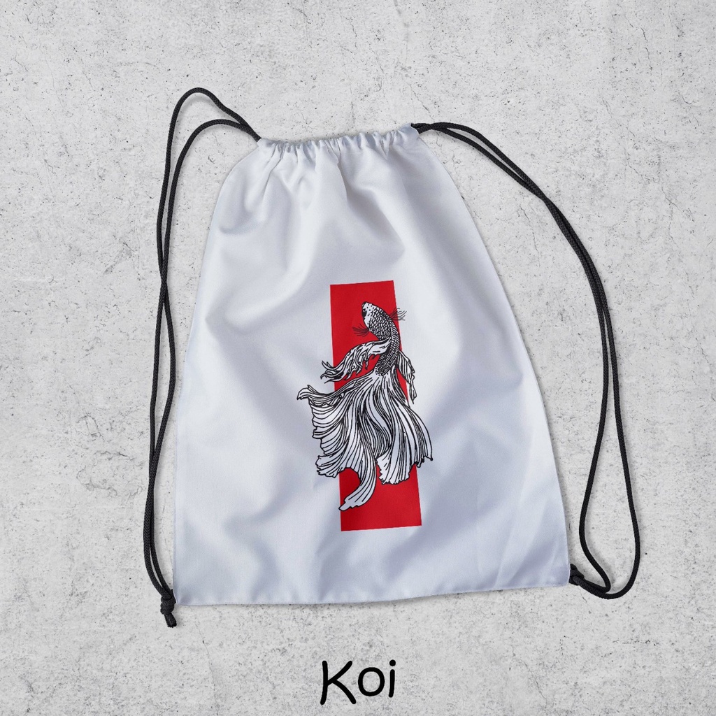 Stringbag / Tas serut: - Bahan drill halus - Tali Kur - Sablon berkualitas - Ukuran tas 40cm x 35cm