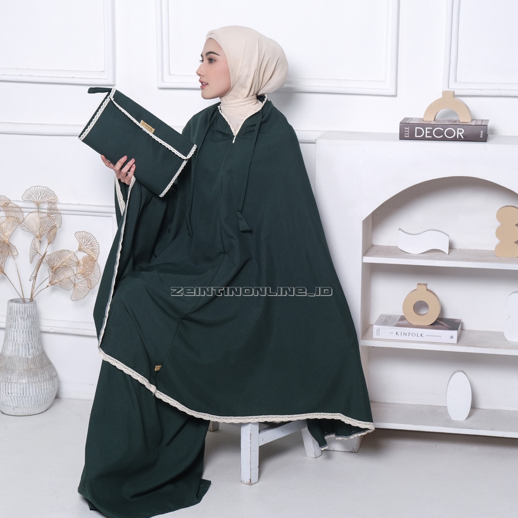 Fashion Muslim > Mukena & Perlengkapan Sholat > Mukena Travel > Zeintin - Mukena Dewasa Zeintin Motif Renda Set Sajadah Travelling Fashion Wanita Muslimah Original AT