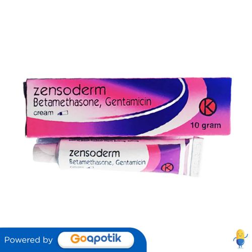 Deskripsi : PENGGUNAAN OBAT INI HARUS SESUAI PETUNJUK DOKTER. Zensoderm digunakan untuk mengobati berbagai kondisi kulit seperti, gatal, bengkak, kemerahan, alergi, ruam. | Komposisi : Tiap gram krim mengandung betamethasone valerate 1 mg dan gentamicin sulfate 1 mg | Dosis : ATURAN PAKAI HARUS SESUAI DENGAN PETUNJUK DOKTER. Dioleskan tipis-tipis pada kulit yang terinfeksi | Indikasi : Untuk mengobati berbagai kondisi kulit seperti, gatal, bengkak, kemerahan, alergi, ruam. | Perhatian Khusus : Hanya untuk penggunaan luar, hindari kontak langsung dengan mata. Hati-hati penggunaan pada ibu hamil, ibu menyusui, dan anak-anak usia <2 tahun. | Kemasan : Tube, 10 gram krim | NIE : DKL0427912329A1