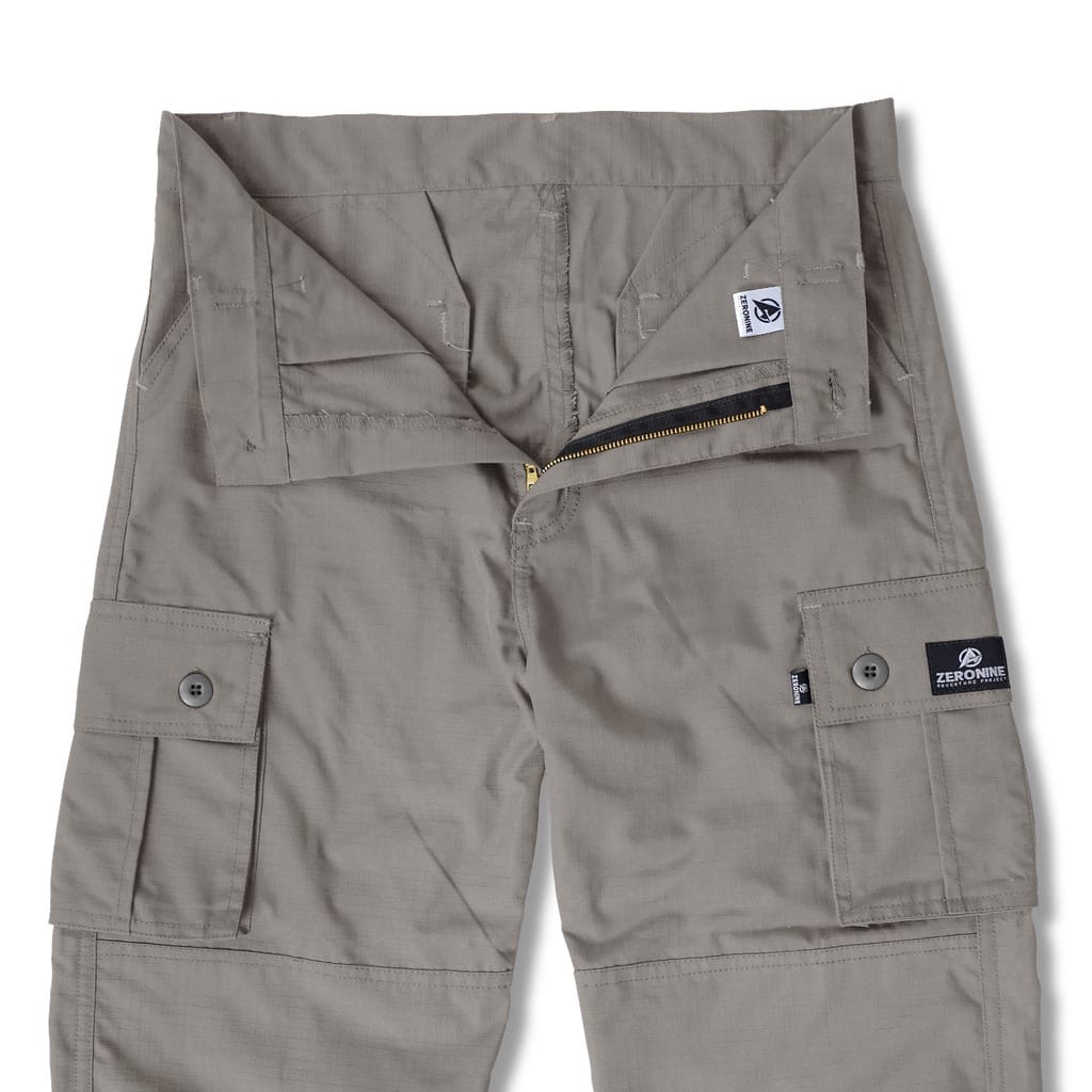 Zeronine Cargo Pants menggunakan bahan Ripstop (kotak), tampil kasual dan tahan lama, celana cargo ini memiliki banyak fungsi cocok untuk pekerjaan harian dan streetwear. Celana cargo pants ini memiliki banyak fitur khusus, yaitu dengan pengencangan gesper berguna untuk menggantikan ikat pinggang, dan tutup kantung pada kantung pinggang membuat barang di dalamnya lebih aman.