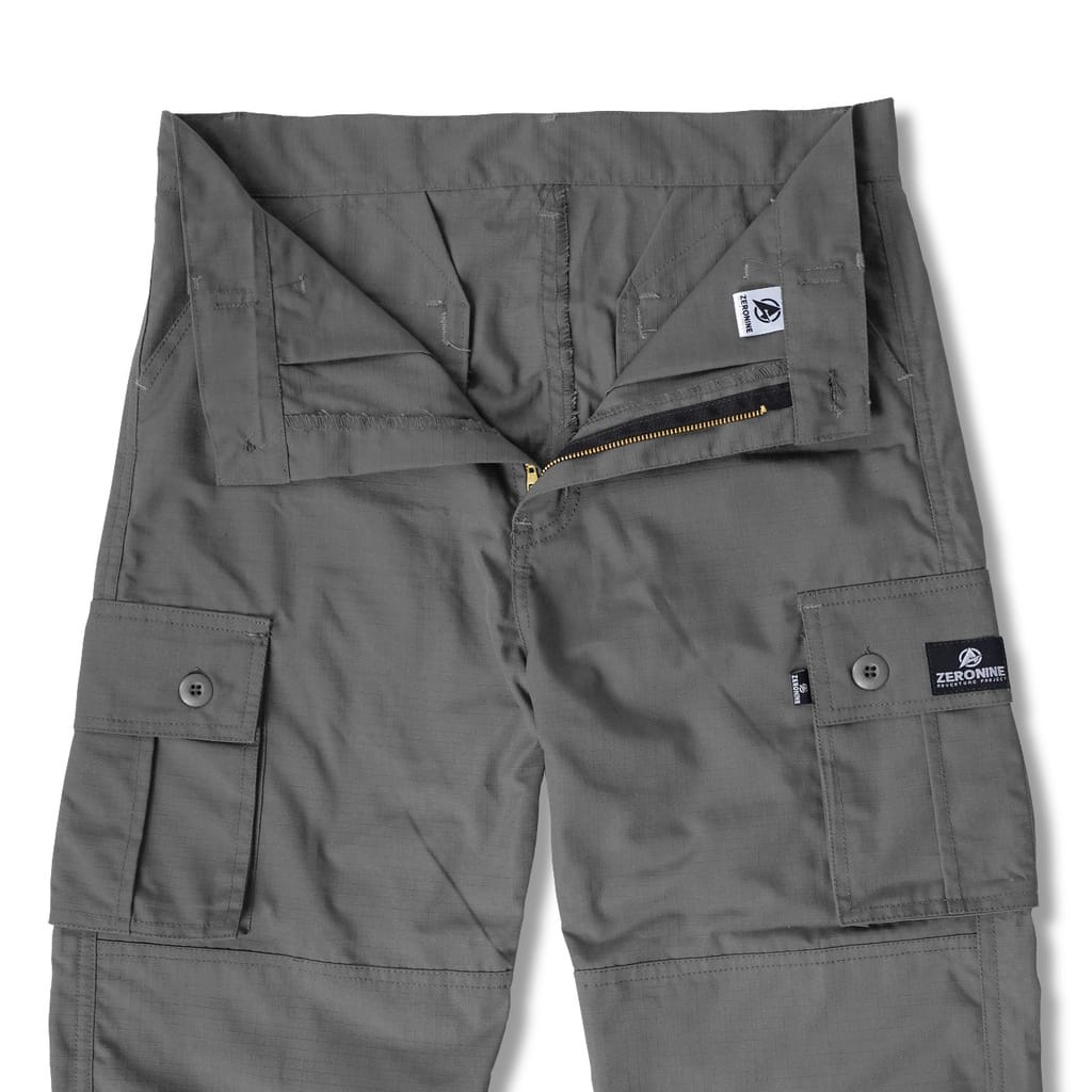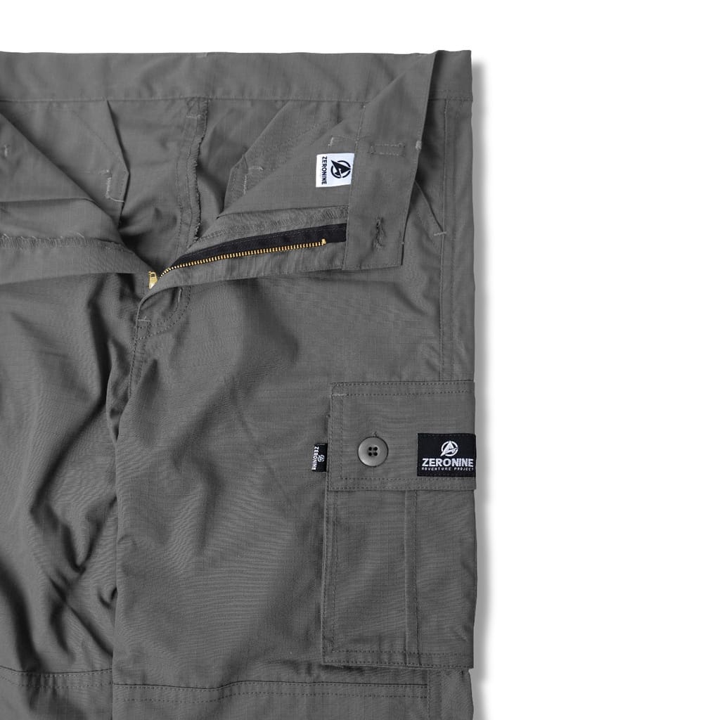 Zeronine Cargo Pants menggunakan bahan Ripstop (kotak), tampil kasual dan tahan lama, celana cargo ini memiliki banyak fungsi cocok untuk pekerjaan harian dan streetwear. Celana cargo pants ini memiliki banyak fitur khusus, yaitu dengan pengencangan gesper berguna untuk menggantikan ikat pinggang, dan tutup kantung pada kantung pinggang membuat barang di dalamnya lebih aman.
