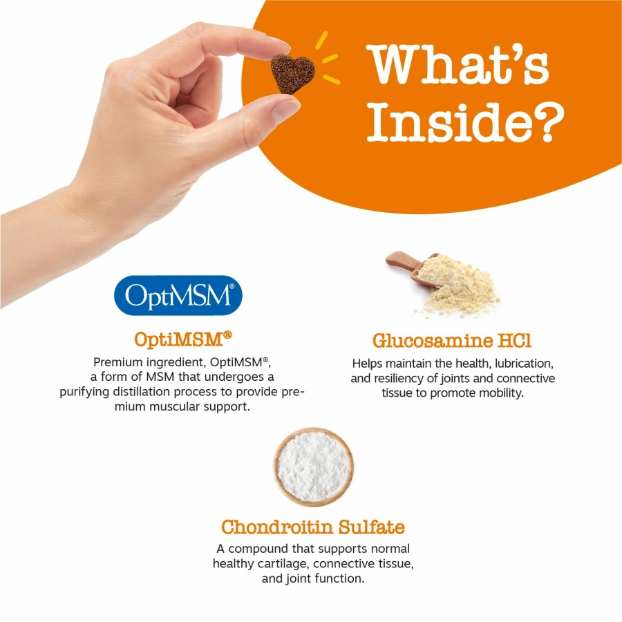 Mobility Bites adalah suplemen hewan peliharaan yang diformulasikan khusus dengan campuran OptiMSM, Glucosamine, & Chondroitin yang dapat mengurangi & meredakan sakit, pegal-pegal, radang & radang sendi untuk setiap anjing.