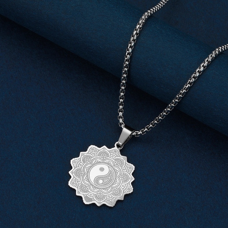 Aksesoris Fashion > Kalung > Liontin > Zh Perhiasan Vintage Stainless Steel Kehidupan Bunga Liontin Fashion Pria Dan Wanita Mandala Kalung Hip Hop Aksesoris Pesta