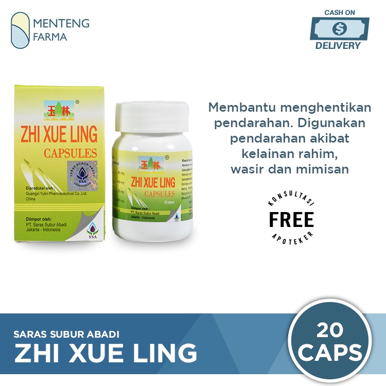 Zhi Xue Ling Capsule berkhasiat untuk menghentikan pendarahan karena kelainan di rahim, wasir serta mimisan. Pendarahan ginekologi, pendarahan vagina, darah menetes dalam jangka waktu yang lama. Berdasarkan ilmu kedokteran kehilangan darah dalam jumlah banyak dapat menyebabkan jantung berdebar, sesak nafas, kelelahan, malaise dan gejala lain dari kehilangan darah.
